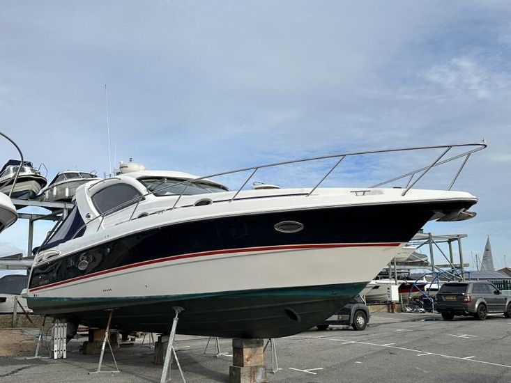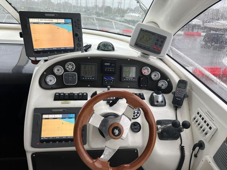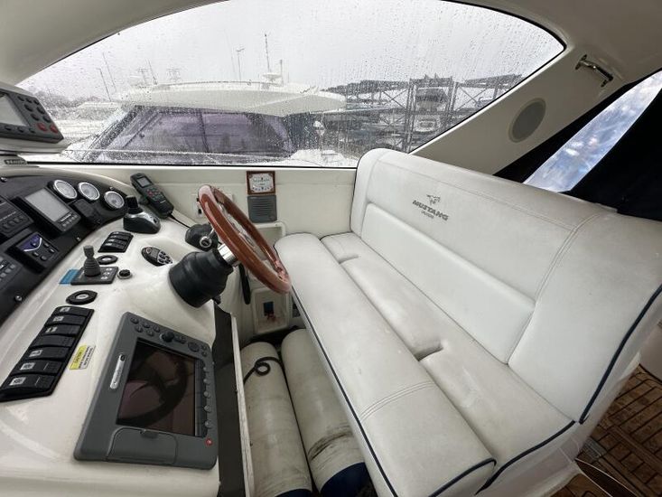 Mustang 3800 Sports Top The Mustang 3800 Sports Top is a 2006 Australian-built sports cruiser offering strong performance and a practical layout. Powered by twin Volvo D6-310 engines with IPS400 drives, with joystick control, this model provides efficient cruising and excellent manoeuvrability. The hull and deck are GRP construction. The boat features a moulded fibreglass hardtop with an electrically operated retractable sunroof, stainless steel fittings throughout, and a reinforced timber and fibreglass stringer grid system. The cockpit includes comfortable seating, power-assisted steering, hydraulic trim tabs, and a clear helm layout. There is a large rear platform with a storm cover and easy deck access. Below deck, the interior offers 2.1m (7ft) of headroom, finished with timber panelling and practical storage throughout. The galley and saloon are well laid out, with accommodation suitable for extended cruising. The Mustang 3800 Sports Top LE combines solid construction with dependable Volvo IPS performance, making it a capable and versatile cruiser for year-round use.Mustang is currently undergoing some cosmetic work including hull polishing and replacing the teak deak. For more information please contact Jenna Vincent at 01202 916 424 or email jenna@clippermarine.co.uk