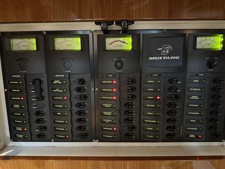 Electrical System: Twin heavy-duty marine batteriesShore power connection with circuit breaker (15A)Interior DC lightingAC outletsHi-amp marine alternatorselectric BBQ