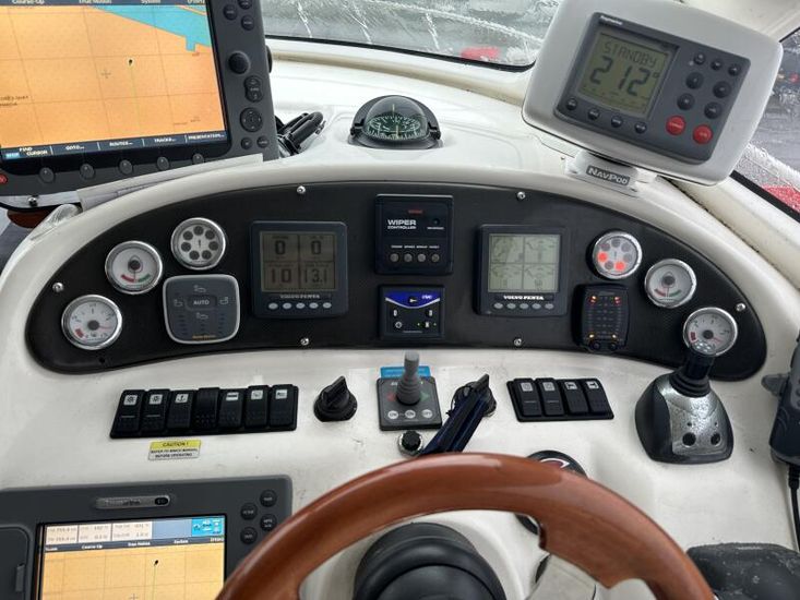 Machinery and Systems: Twin Volvo D6-310 IPS400 diesel enginesApprox. 500 engine hoursBow thruster7.5kVA diesel generatorVolvo EDC single lever controlsPower steeringJoystick controlMarine water-cooled muffler systemEngine room ventilation fan and bilge blowersAutomatic bilge pumps with float switches